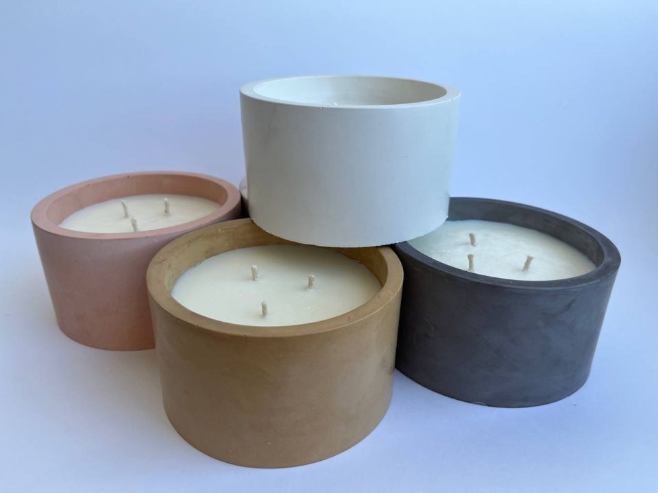 Ароматическая свеча из соевого воска в чаше из бетона.