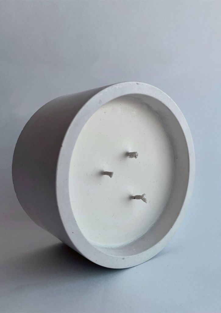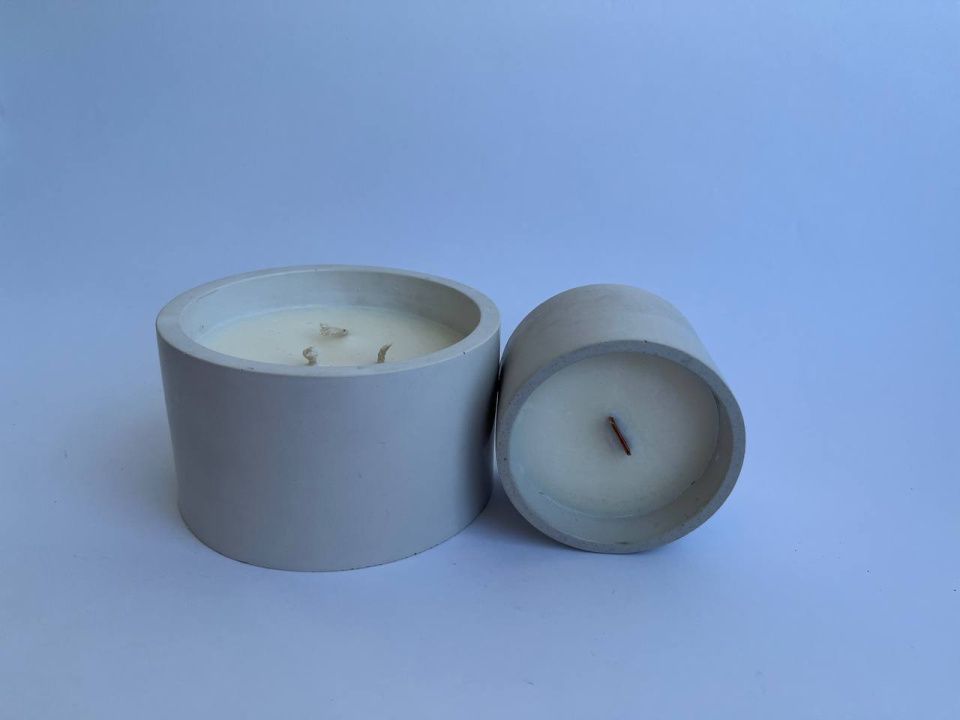 Ароматическая свеча из соевого воска в чаше из бетона.