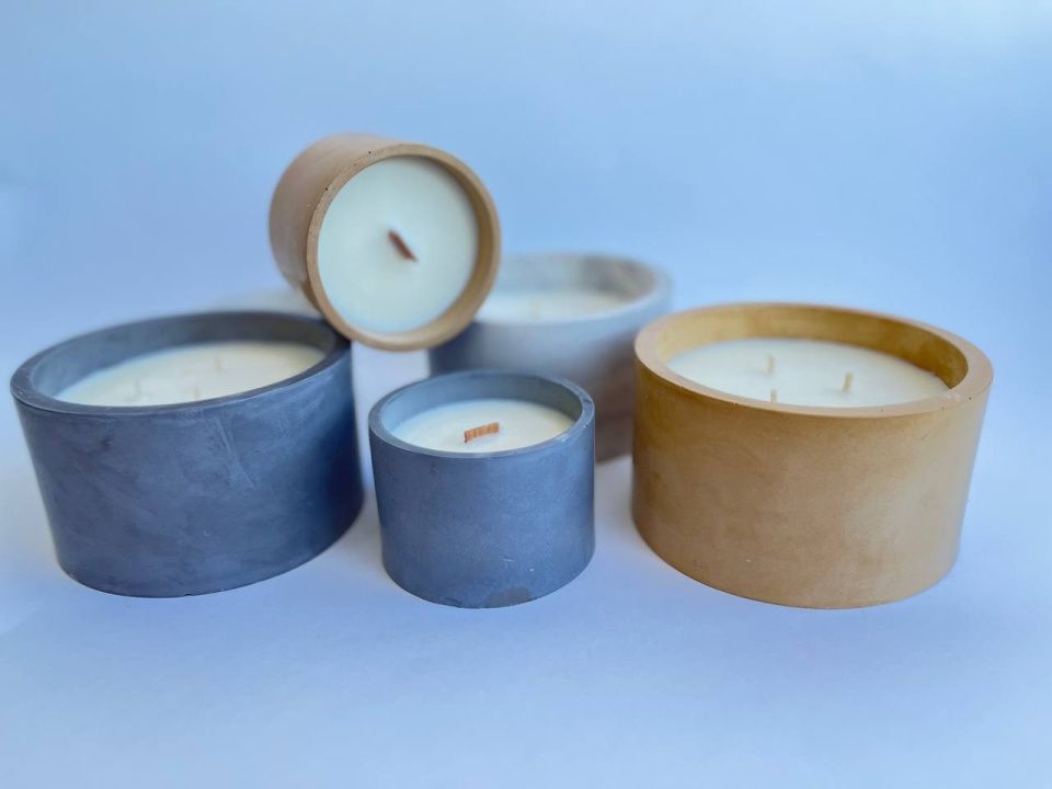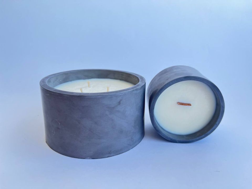 Ароматическая свеча из соевого воска в чаше из бетона.