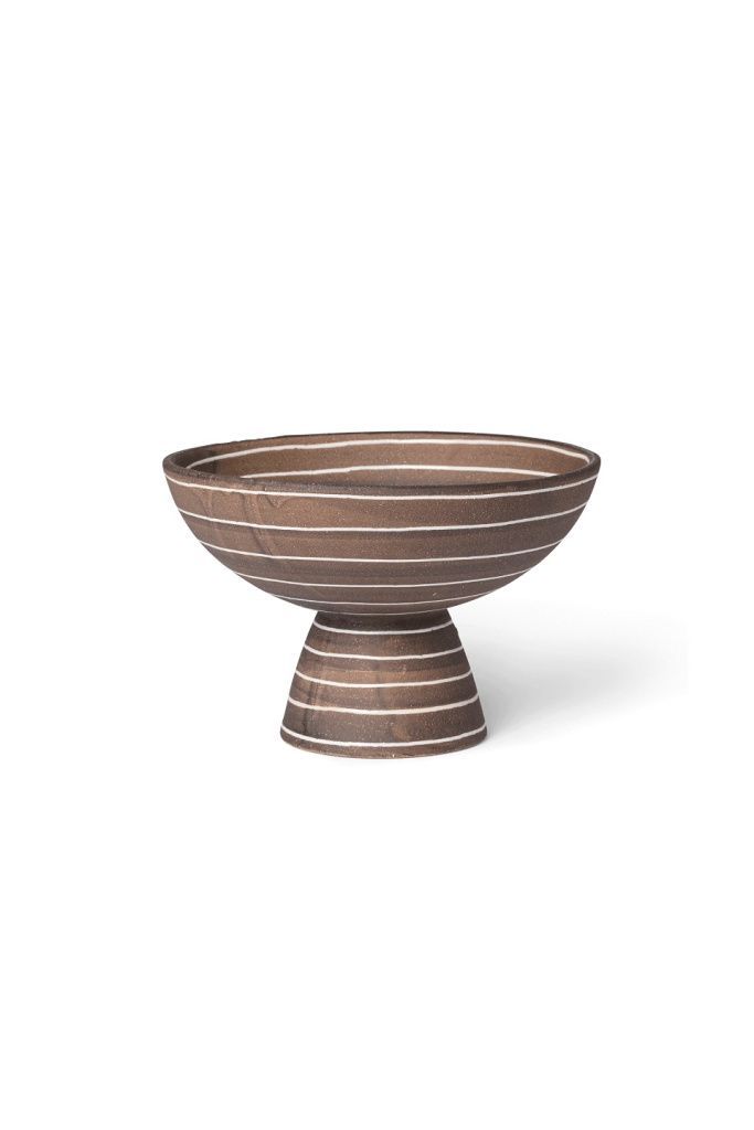 Чаша Brura выглядит теплой и тактильной, что делает ее пленительным центральным элементом любого жилого пространства. Изготовленная из терракоты, эта вещь излучает ремесленную простоту и элегантность, усиленную глазурью кофейного цвета, которая придает ощущение глубины и богатства. Расписанные вручную белые полосы создают поразительный контраст, подчеркивая уникальную форму чаши и усиливая ее визуальную привлекательность.