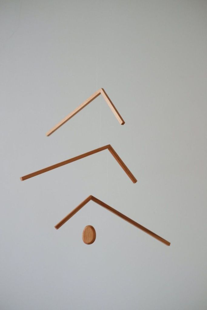 Мобиль, являясь украшением интерьера, должен висеть там, где достаточно места для его свободного движения, на уровне глаз или чуть выше.