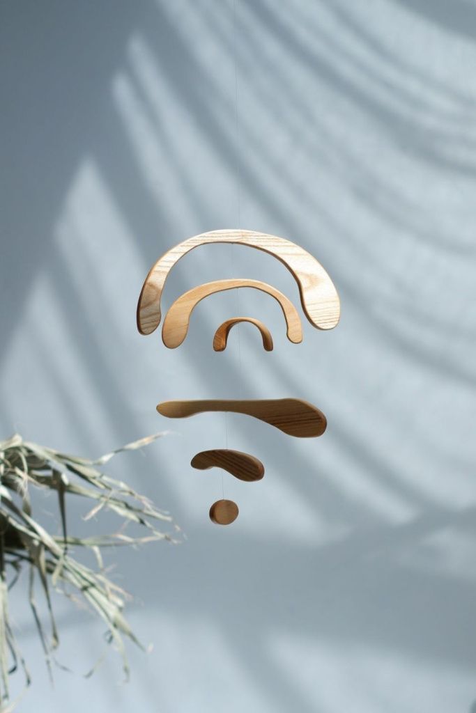 Мобиль, являясь украшением интерьера, должен висеть там, где достаточно места для его свободного движения, на уровне глаз или чуть выше.