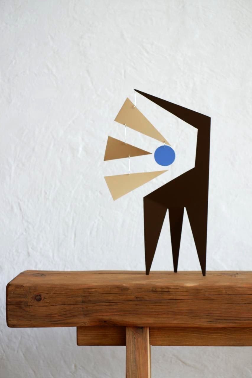 Этот мобиль многим напоминает сказочного коня, неведомое животное или дерево! Уверены, у каждого будут свои ассоциация и видение - это и ценно в искусстве. Подвесная часть приходит в движение от естественных потоков воздуха и, тем самым, видоизменяет форму, делая процесс наблюдения еще более интересным.