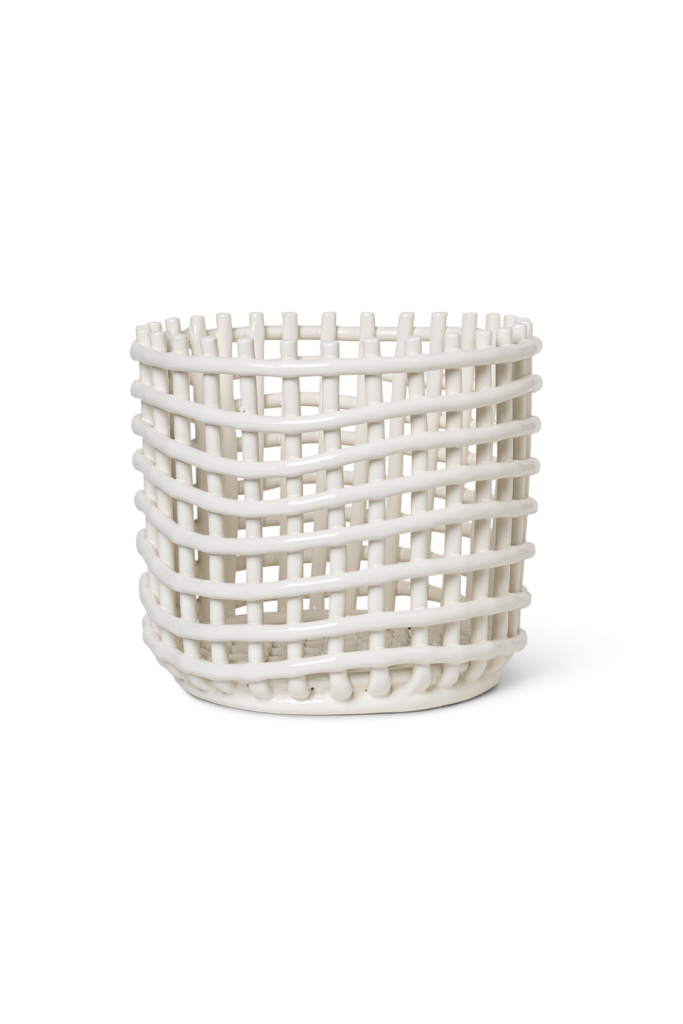 Благодаря традиционной технике ткачества в гончарном производстве, плетеные керамические корзины ручной работы Ceramic Basket Large от FERM LIVING воссоздают привычное ощущение тканого контейнера. Многофункциональный дизайн корзин позволяет использовать их для домашних растений. А также в качестве чаши для фруктов или самостоятельно, как декоративное украшение в комнате.