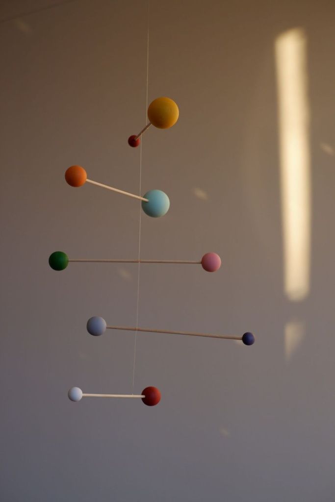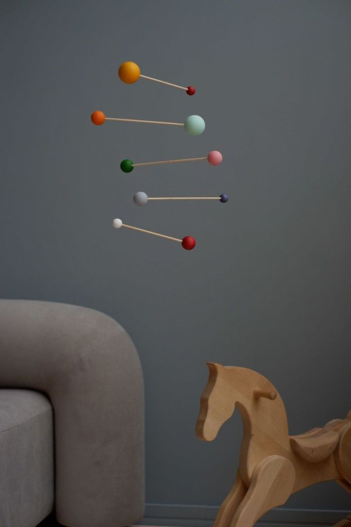 Каждый мобиль изготавливается и балансируется вручную. Мобиль не нужно тянуть или дополнительно приводить в движение. Поток воздуха сделает всю работу!