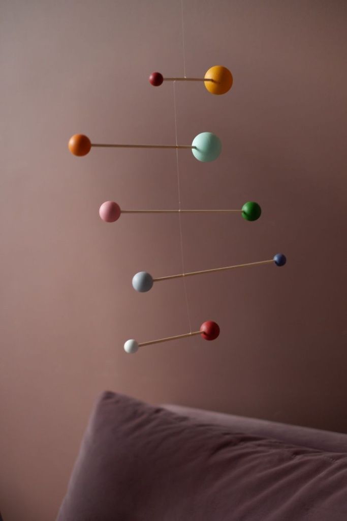 Мобиль, являясь украшением интерьера, должен висеть там, где достаточно места для его свободного движения, на уровне глаз или чуть выше.