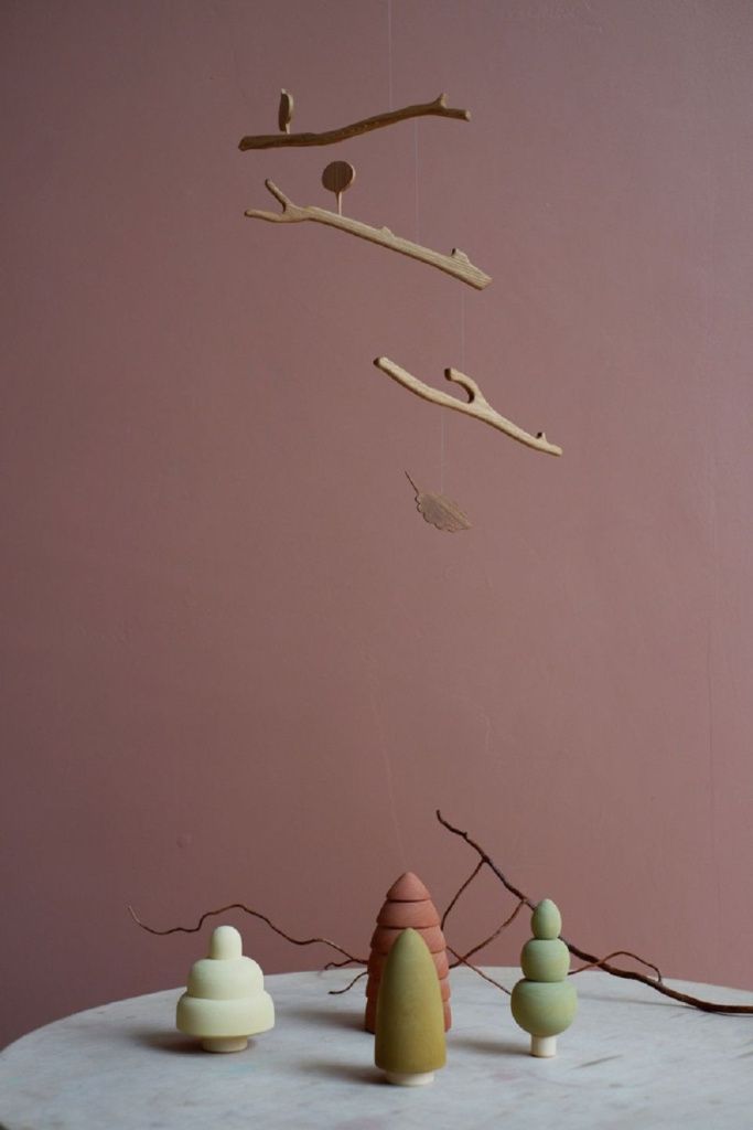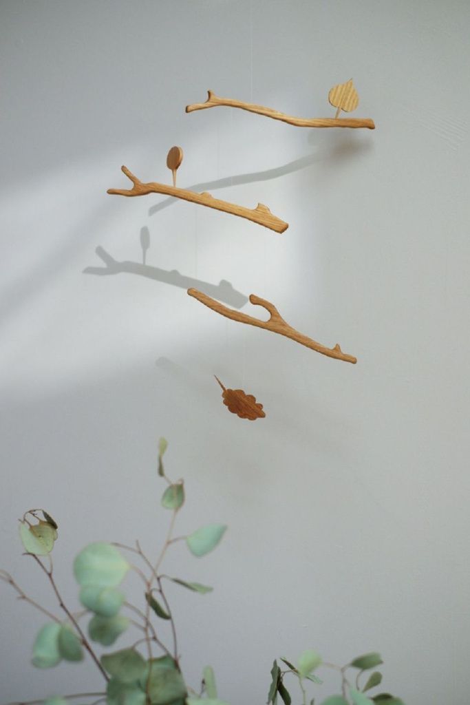 Этот мобиль изготовлен вручную из трех пород дерева и олицетворяет начало весны и самой природы.