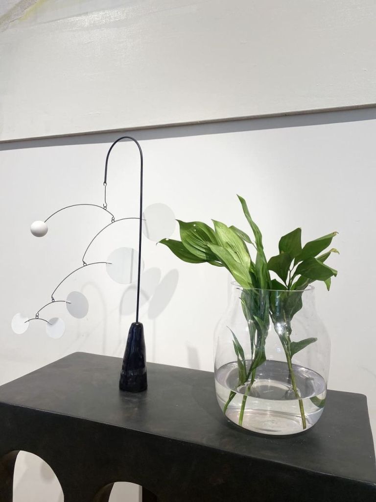 Настольный Мобиль Sunrise с основанием из керамики и лепестками и стержнем из крашенной стали.