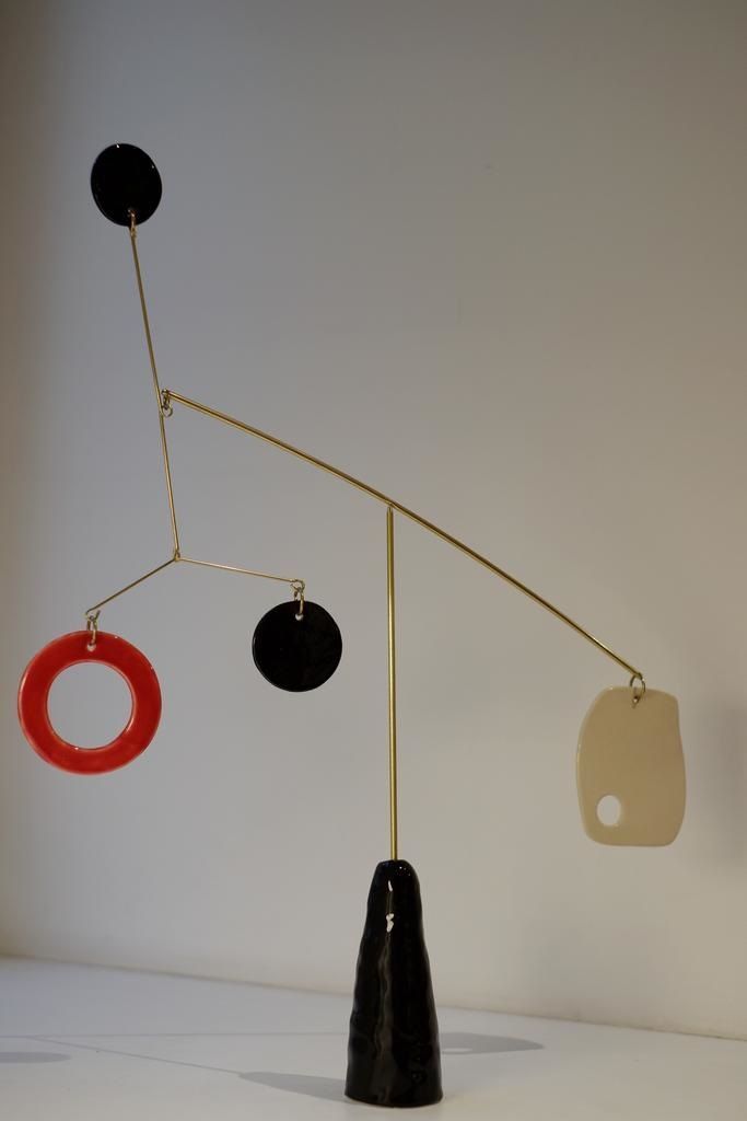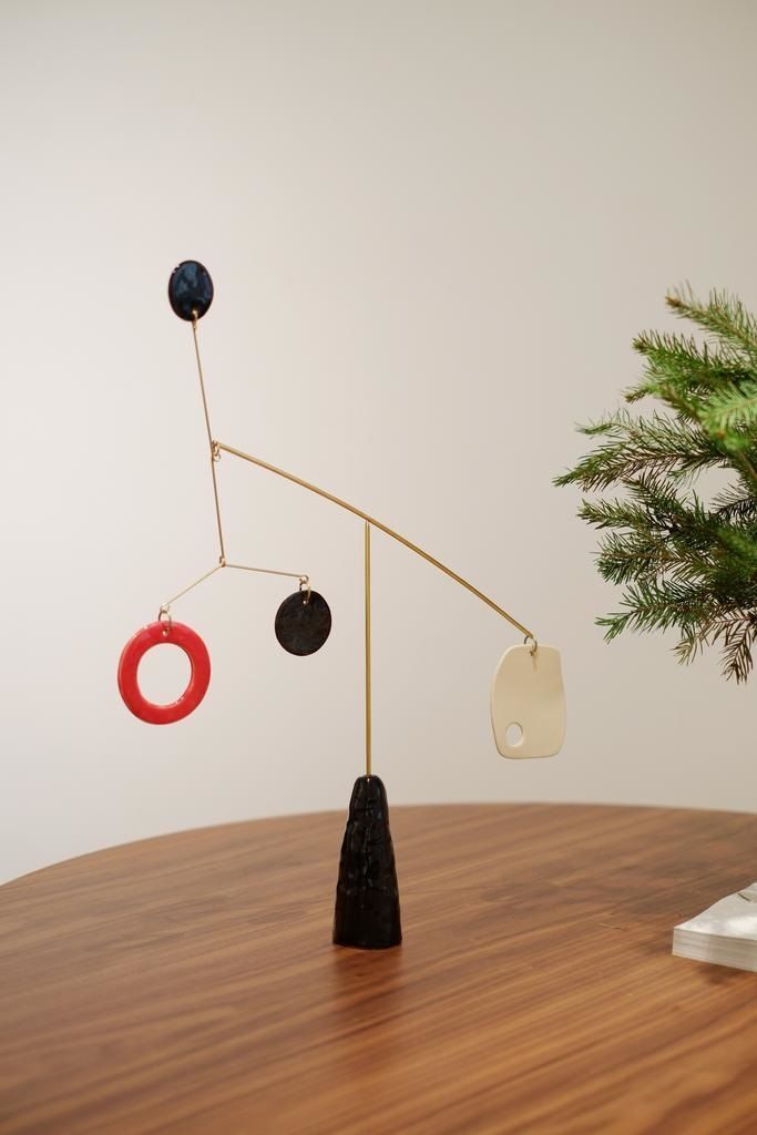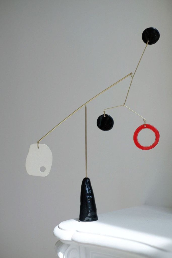 Этот настольный мобиль выполнен из керамических деталей разных цветов.