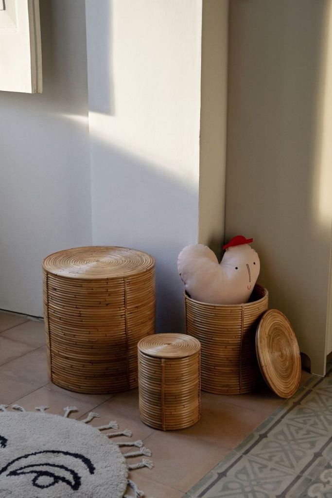 Набор из трех корзин полностью изготовлен из окрашенного натурального ротанга, что создает красивый контраст с их простой, чистой формой и придает каждому предмету мягкий и органичный вид. В дополнение к своей функциональности каждая корзина поставляется с практичной крышкой, позволяющей легко спрятать любой ненужный беспорядок. Используйте корзину для сортировки белья, хранения игрушек вашего малыша в конце дня или в качестве декоративного и полезного решения для хранения в гостиной.