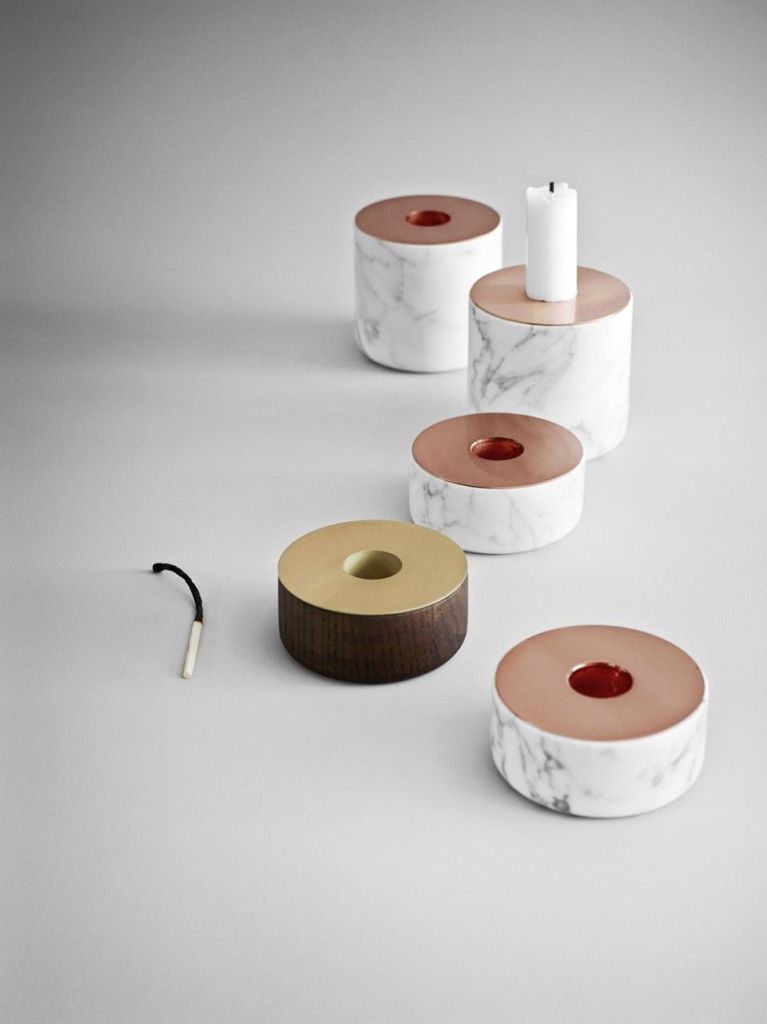 О подсвечнике Chunk можно сказать, что он жесткий снаружи и романтичный внутри. Основание из белого мрамора говорит о прочности, а блики огня, отражающиеся от латунного верха подсвечника, создают романтическое свечение. Соединяя материалы и стихии, дизайнеры добились сказочного эффекта.