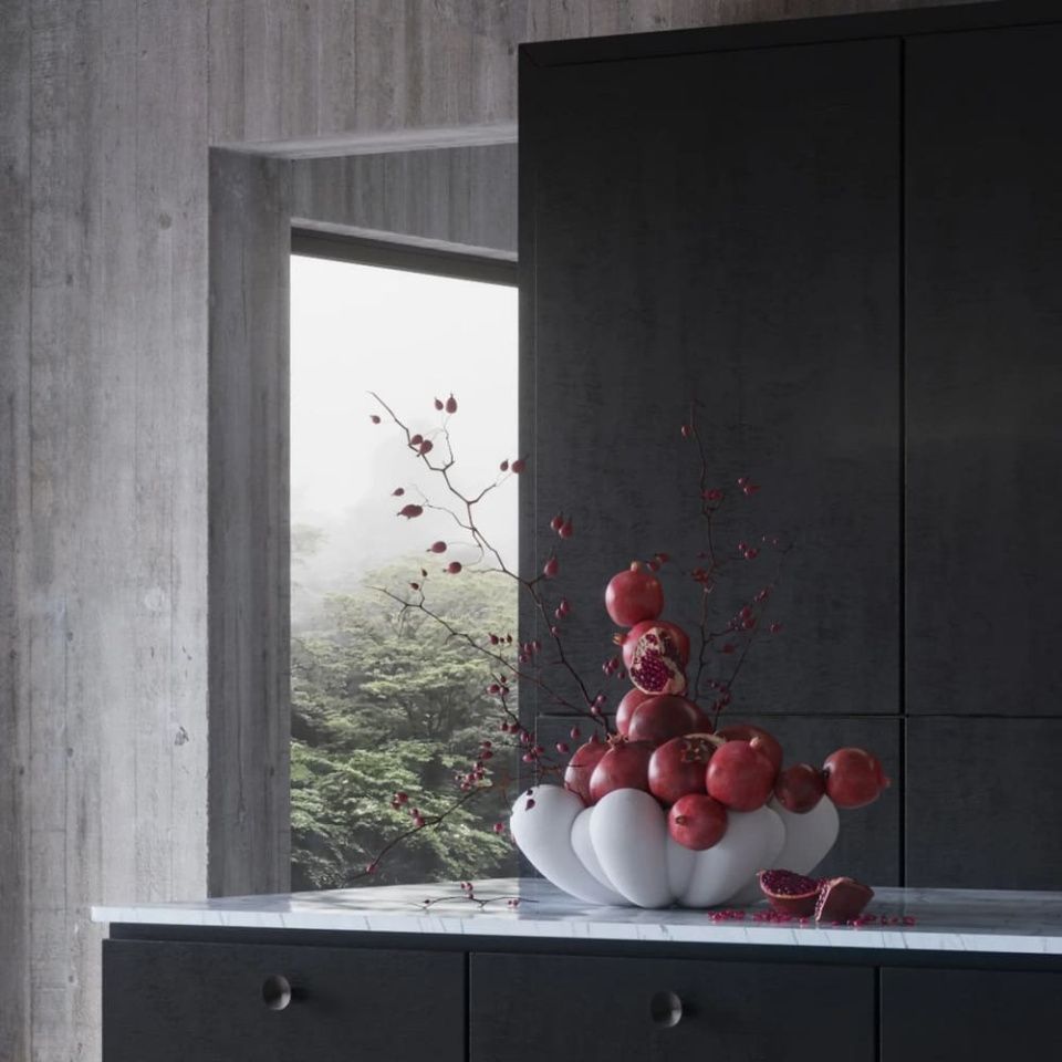 Bloom — это интерпретация цветочного дизайна 70-х годов. Плавно изогнутая поверхность контрастирует с четкой базовой геометрией и обогащается красивой игрой теней в углублениях  поверхности. Благодаря своему выразительному дизайну блюда Bloom меняют внешний вид в течение дня в зависимости от положения света и тени.