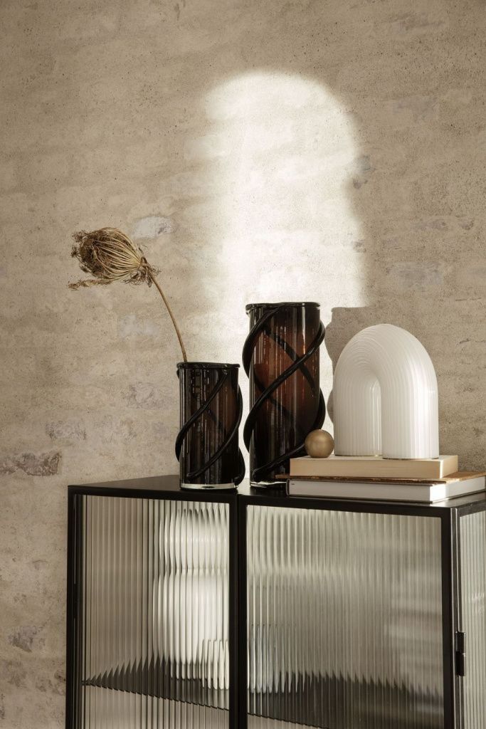 Ваза Entwine Vase Dark Amber от FERM LIVING изготовлена вручную и уникальна. Ваза украшена витыми стеклянными полосами, которые изящно обвивают цилиндрическую форму по периметру. Наполните её своей любимой флорой или позвольте вазе стать самостоятельным декоративным элементом Вашего интерьера.