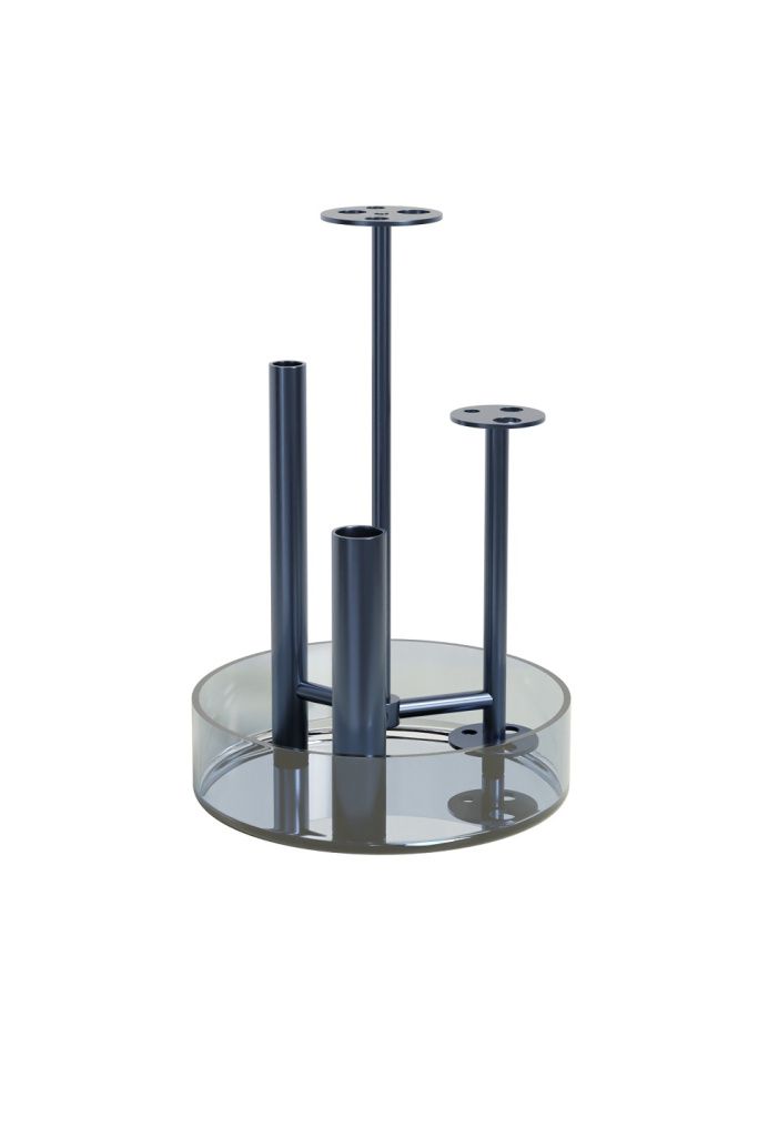 Красивый и простой дизайн, вдохновленный японским искусством икебаны. Металлические трубки вмещают каждый цветок по-отдельности, что позволяет полностью оценить их с разных точек зрения. Вода в стеклянном поддоне внизу сохраняет свежесть композиций.