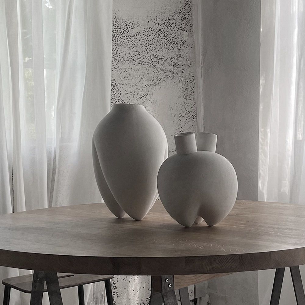 Ваза Sumo Slim Bone White от 101 Copenhagen прославляет человеческое тело. Являясь прямой отсылкой к японскому спортивному сумо, все вазы объемные по размеру и форме и опираются на узкие заостренные ножки. Коллекция Sumo рассматривает контраст между знакомыми формами вазы и добавлением более художественных, абстрактных идей и деталей, ставя под сомнение наше индивидуальное восприятие формы вазы. Каждая ваза в коллекции Sumo разработана как самостоятельный художественный объект, но при сборке нескольких образует единое семейство объектов.