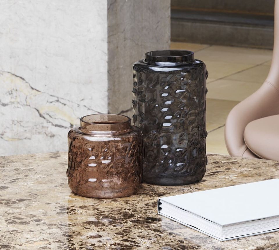 Рельефы в цветном стекле играют со светом и тенью, придавая вазе художественный характер.