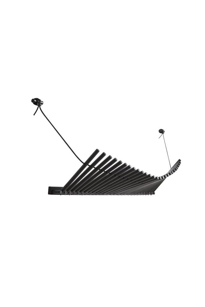 Knaegt — это элегантная и эстетичная вешалка и полка для шляп. Простое чередующееся повторение деревянных палочек, с проходящим через них кожаным шнуром, придает вешалке динамичность, поскольку линия, создаваемая палочками, меняется в зависимости от того, что находится на вешалке. Каждая палочка выполняет функцию вешалки.