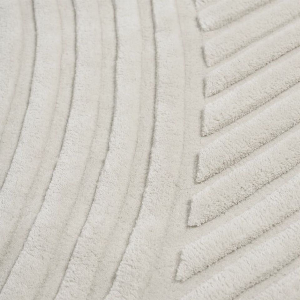 Relevo — это мягкий ковер с ярко-выраженной скульптурностью. Его поразительный графический рисунок создается путем обрезки тафтинговой шерсти на разных уровнях, что создает привлекательную игру теней, придающую ощущение двухцветности, а не монохромности. Единственный закругленный угол ковра добавляет ему уникальный характер.
