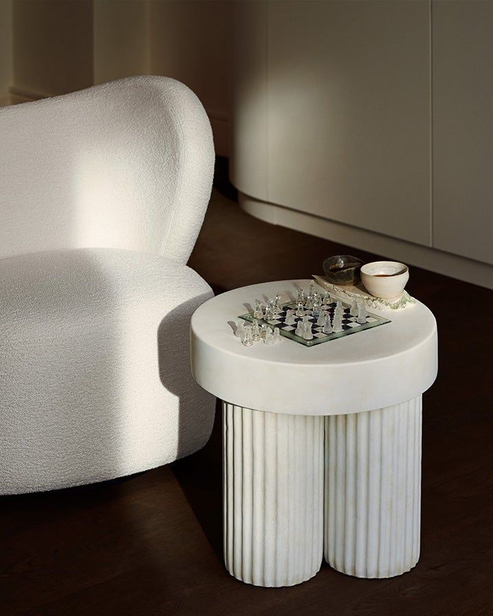 Стол приставной Gear Side Table Chalk NORR11 вдохновлен архитектурой брутализма середины 20-го века.