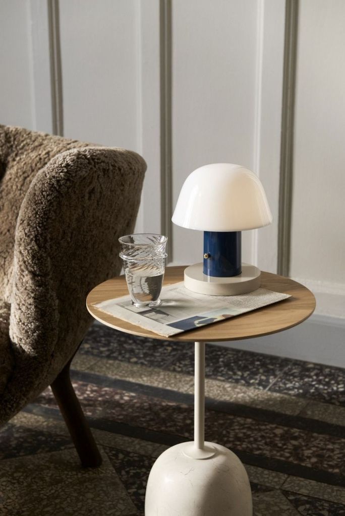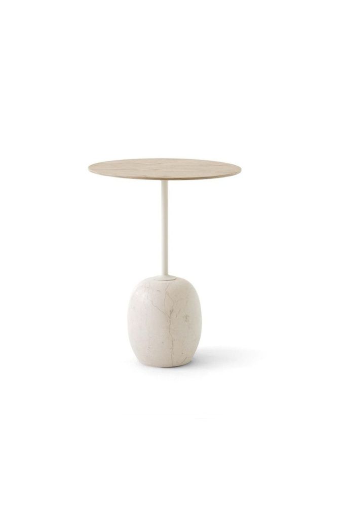 На первый взгляд столик Lato напоминает скульптуру: тонкая, овальная или круглая столешница уравновешивается овальным мраморным основанием.