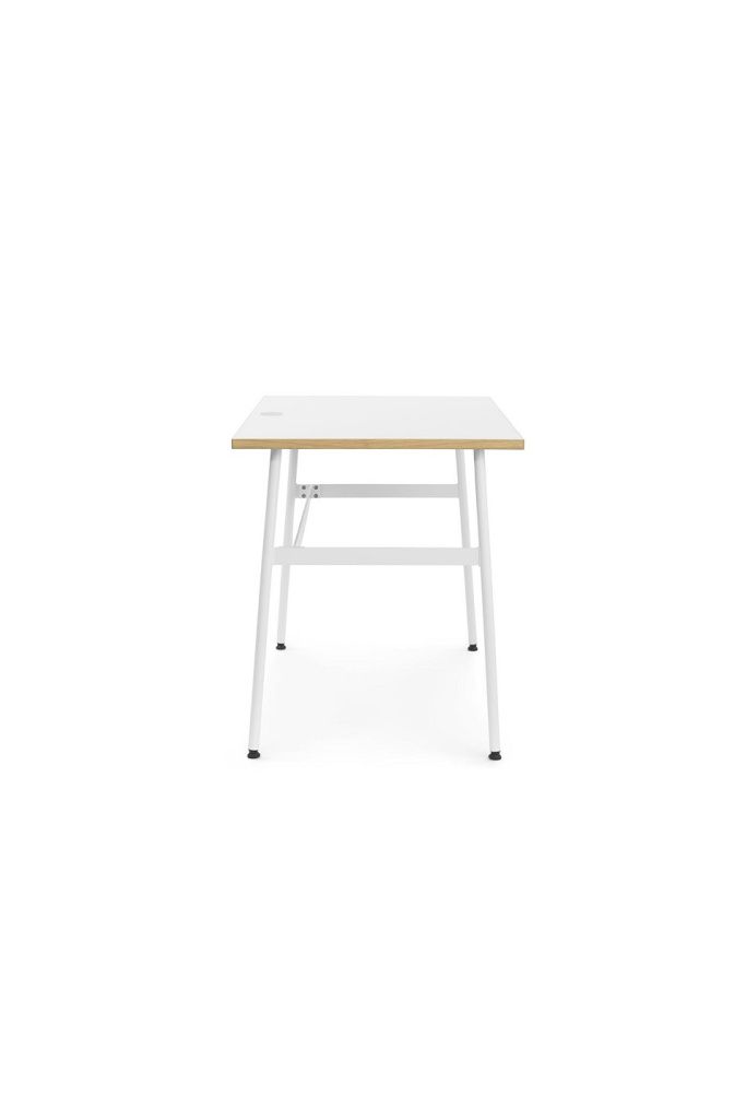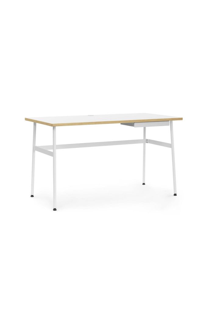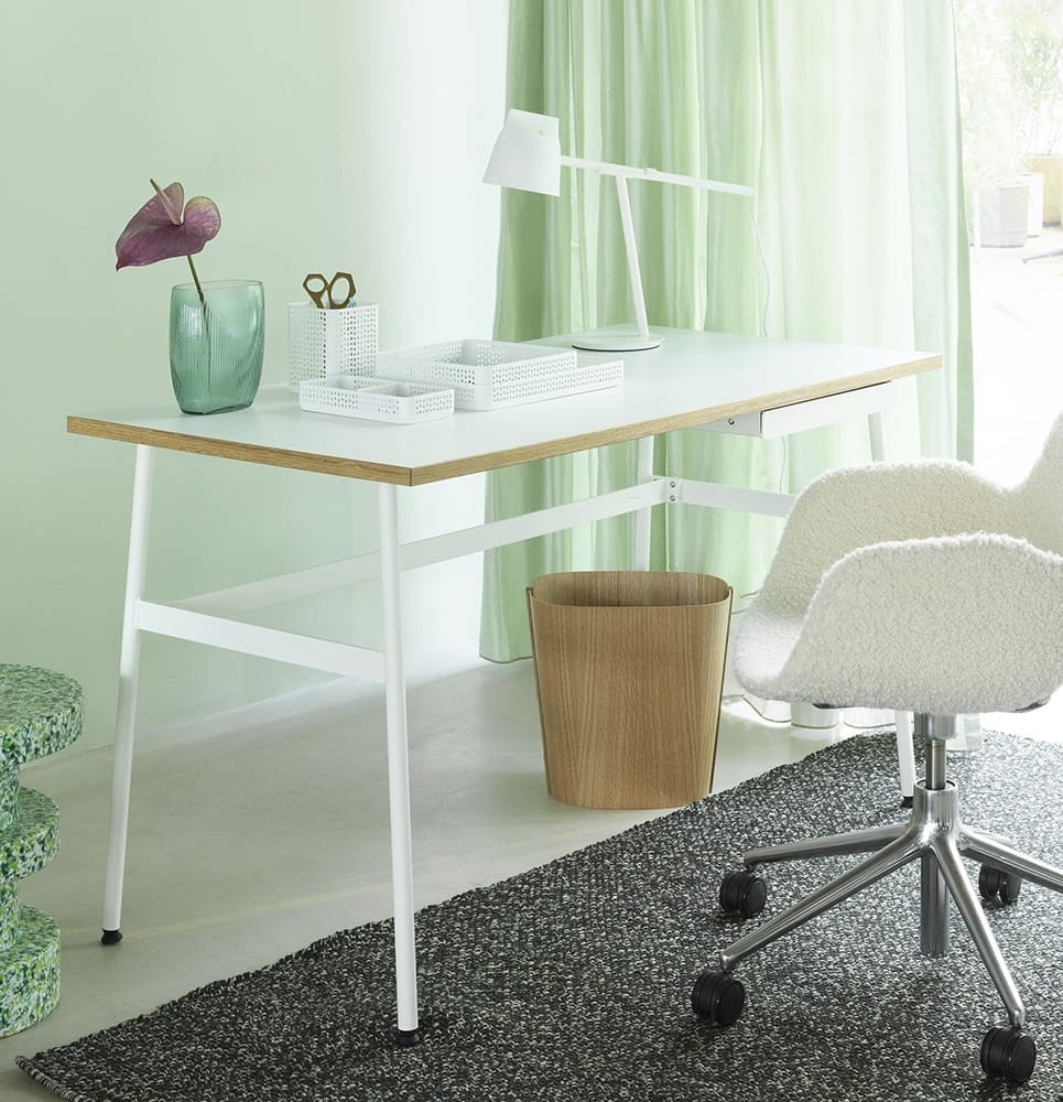 В дизайне этого стола практическое использование определяется дискретными функциональными деталями. На рабочем столе имеется встроенная прокладка для проводов, а в стальном ящике под столом можно разместить канцелярские принадлежности. Маленькие детали стола помогают создать приятную среду, в которой могут рождаться хорошие идеи.