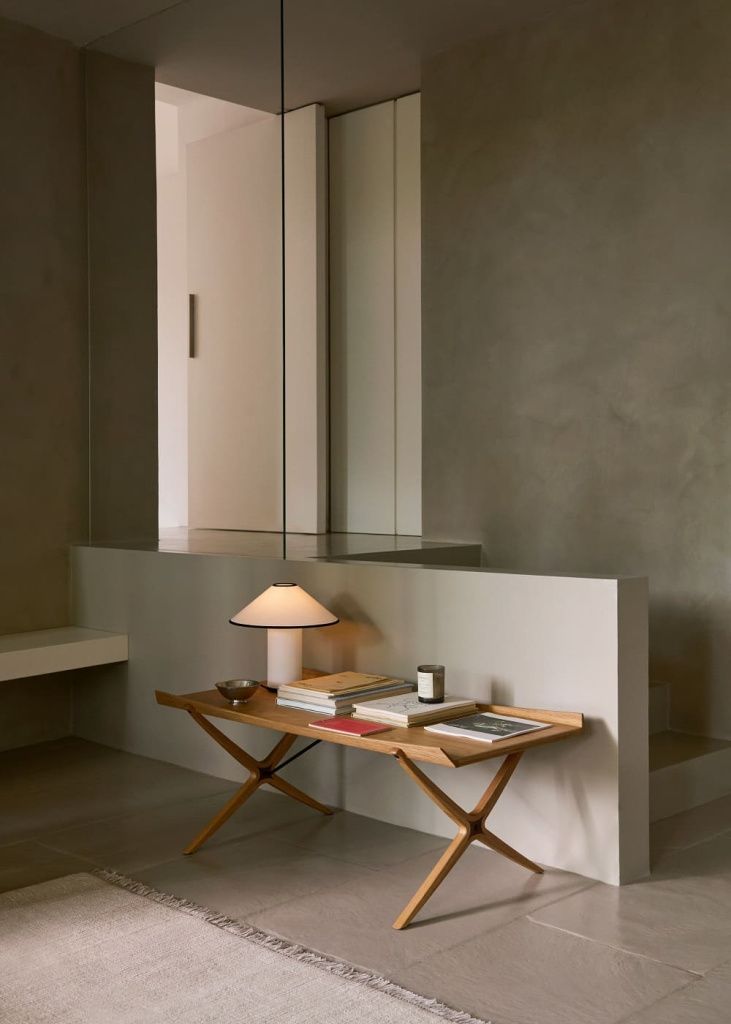 Первоначально разработанный в 1959 году, стол X является примером вершины сотрудничества Hvidt & Mølgaard как творческих соавторов. Возрожденный из семейных архивов, стол черпает свой уникальный дизайн из складных стульев Древнего Египта. Стол X демонстрирует наклонную раму и разборчивое использование подручного материала.
