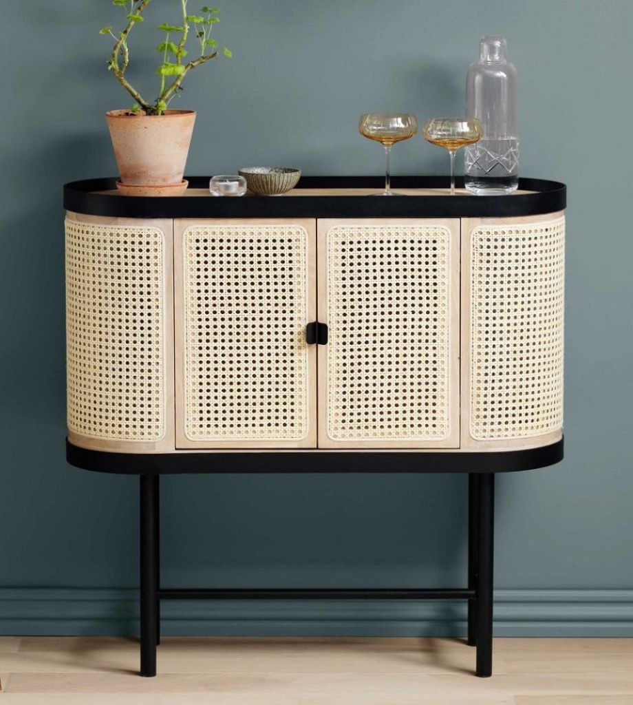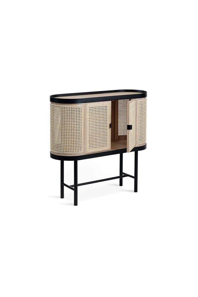 Барный шкаф Be My Guest можно использовать в нескольких комнатах дома, и он придется к месту повсюду благодаря своему уникальному дизайну и классическому выбору материалов, где французское плетение в сочетании с дубом обеспечивает теплое сияние. Классические черты дополнительно подчеркиваются закругленными углами, которые придают барному шкафу Be My Guest мягкость. Органичный дизайн в сочетании с простой рамкой из черного металла обеспечивает легкий внешний вид, а овальная столешница не только красива для подачи напитков, но и позволяет демонстрировать книги, растения в интерьере как уютный натюрморт. Классический дизайн в сочетании с современной изысканностью позволяет барному шкафу Be My Guest легко вписаться в современный интерьер.