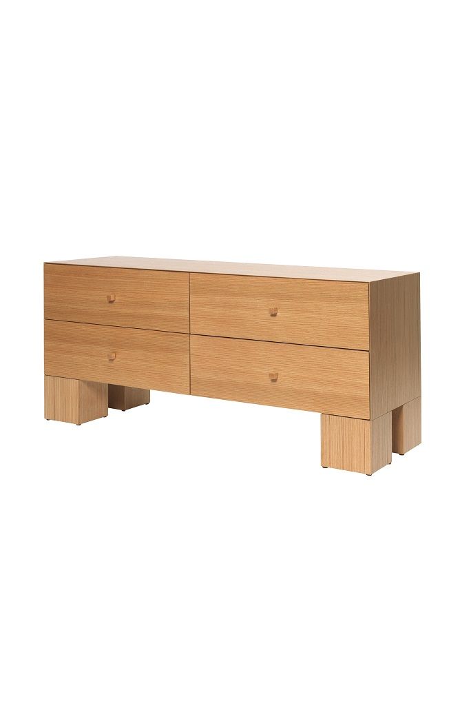 Комод Kuben изготовлен из натурального дубового шпона, сертифицированного FSC™. Его острая кубическая форма и скошенные соединения создают иллюзию бесшовной конструкции, в то время как большие кубические ножки привносят смелый характер. Изящные ручки добавляют изысканный штрих, усиливая игривую интригу дизайна. Легко сочетая функциональность с минималистской эстетикой, он предлагает просторное пространство для хранения одежды и других необходимых вещей.