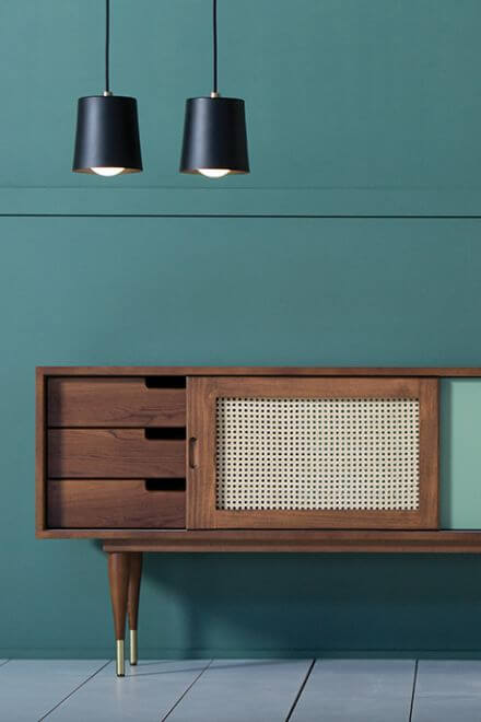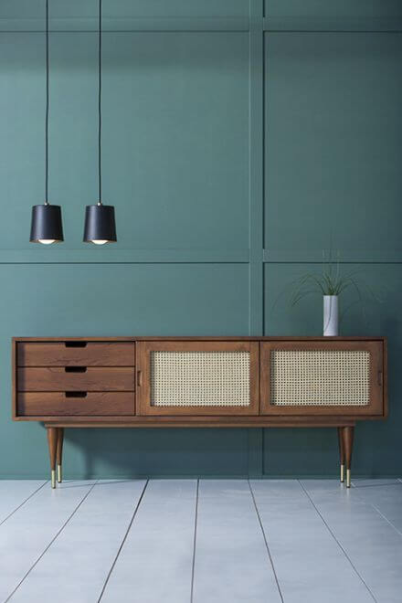 Аккуратный, но выделяющийся внешним видом комод. Благодаря раздвижным дверцам с ротанговыми вставками, положение которых можно менять, легко изменить вид, как самого комода, так и обстановки в помещении. База помещена на ножки, выполненные из дерева и металла.