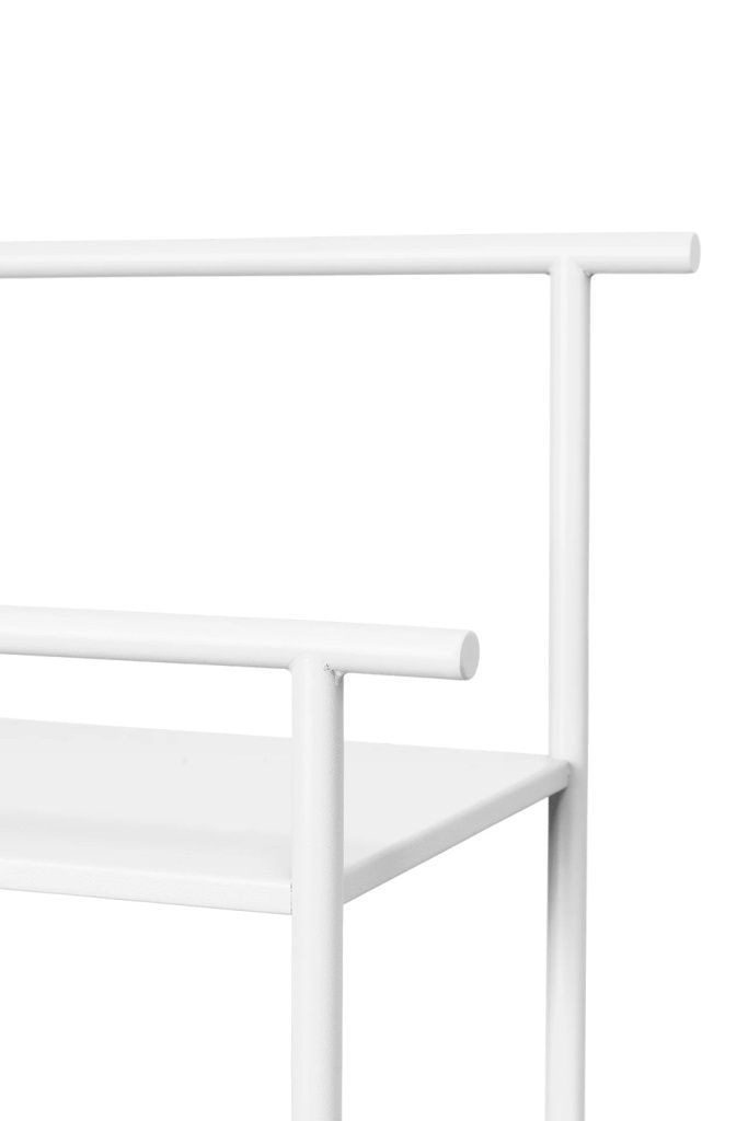 Простые, но функциональные конструкции из металла с порошковым покрытием стеллажа Dora Shelving Unit от FERM LIVING устойчивы к ржавчине, поэтому идеально подходят для использования во влажных условиях ванной комнаты. В стеллаже Dora достаточно места для всех предметов первой необходимости, а благодаря тонкому дизайну его можно установить даже в душевой кабине.