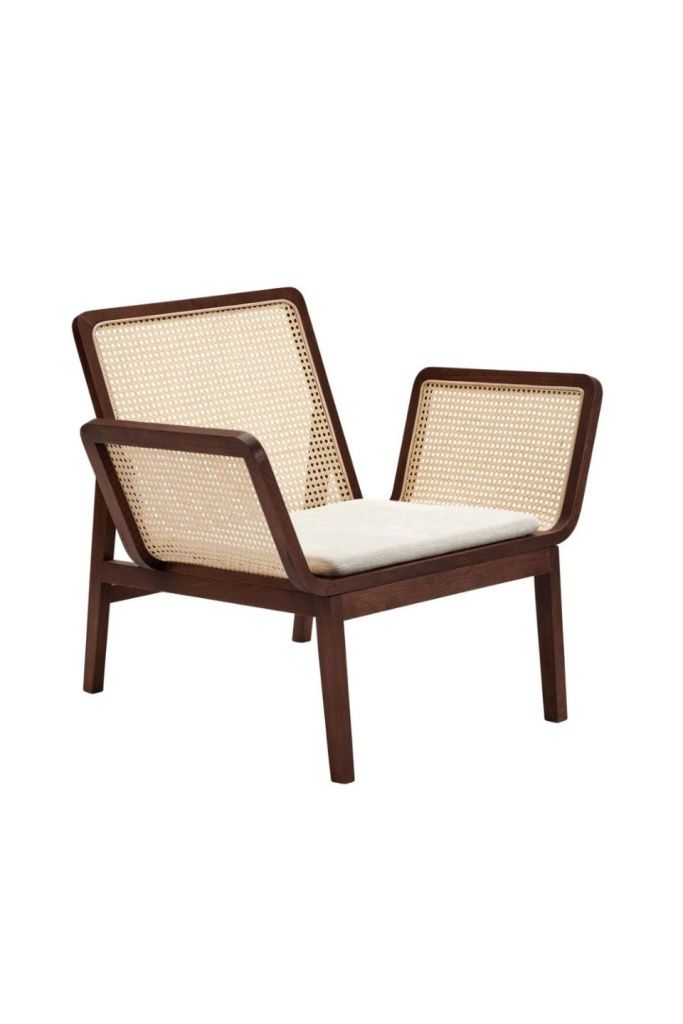 Кресло для отдыха Le Roi Chair NORR11 изготовлено из массива дуба и французского ротанга. Коллекция представляет собой минималистичную интерпретацию мебели из ротанга французского колониального периода, объединенную с хорошо известными скандинавскими образцами мебели. Тактильный ротанг создает полупрозрачную поверхность, подчеркивающую красоту простой деревянной конструкции. Свободная льняная подушка для сидения обеспечивает дополнительный комфорт и расслабление.