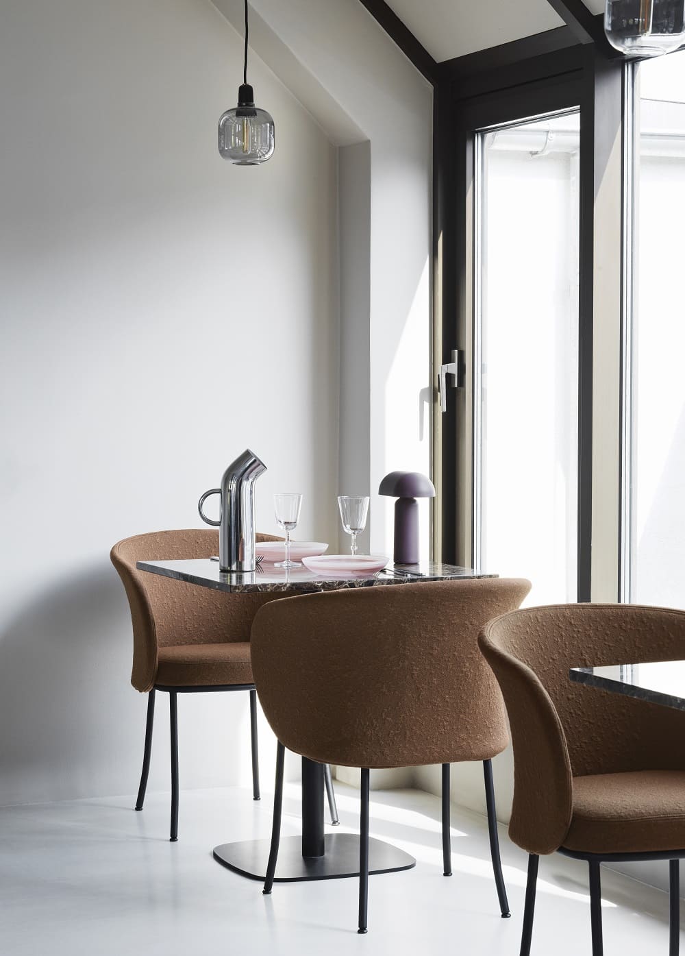 Кресло Knit Armchair – это образец изысканного комфорта и функционального дизайна. Благодаря своему лёгкому силуэту и мягкой, обволакивающей форме, кресло получило своё название от характерного трикотажного чехла. Эластичная ткань плавно обтягивает каркас, создавая гладкую, без складок поверхность и улучшая эргономичность кресла. Плавный изгиб спинки повторяет естественные контуры тела, обеспечивая поддержку и комфорт даже при длительном сидении. Функциональность прослеживается в каждой детали: слегка наклонённое сиденье располагает к удобному положению, а элегантно изогнутые стальные ножки добавляют ощущение лёгкости и устойчивости. Кресло обито тканью Myr – новым трикотажным материалом от Kvadrat, изготовленным из 100% переработанного полиэстера. Myr, отличающийся сложным меланжевым узором и неровной трёхмерной структурой, усиливает тактильные ощущения, добавляя креслу визуальную глубину и динамичную выразительность.