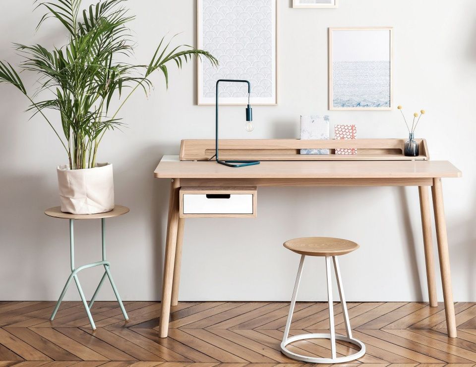 Дизайнер Charles Seuleusian объединил твердый дуб и металл, чтобы создать табурет Gustave Small Blanc для Harto. У него легкий, гемометрический силуэт, легко сочетающийся со многими типами письменных столов.