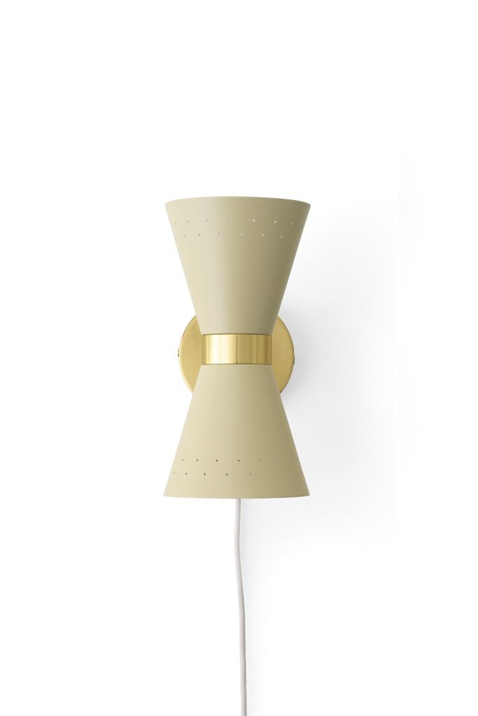 Настенный светильник отличается прочной латунной лентой, которая держит конический металлический абажур, излучающий свет в двух направлениях.