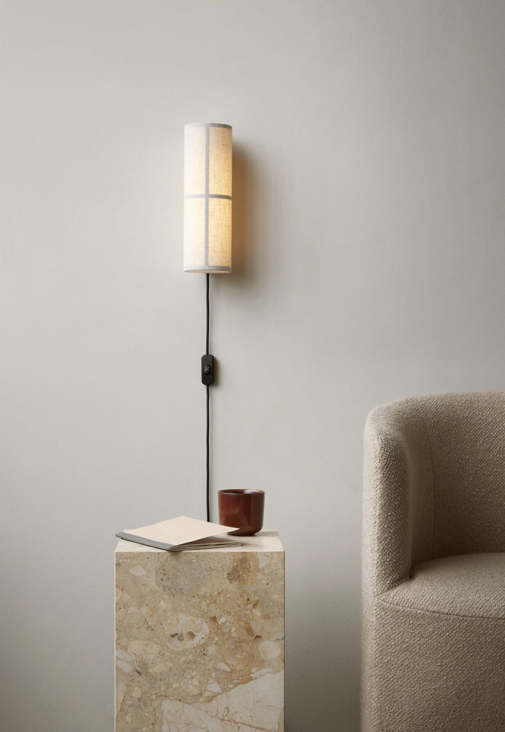 Тонкая цилиндрическая форма бра Hashira вдохновлена полупрозрачной тканью японских фонарей, мягко рассеивающих свет в разных направлениях.