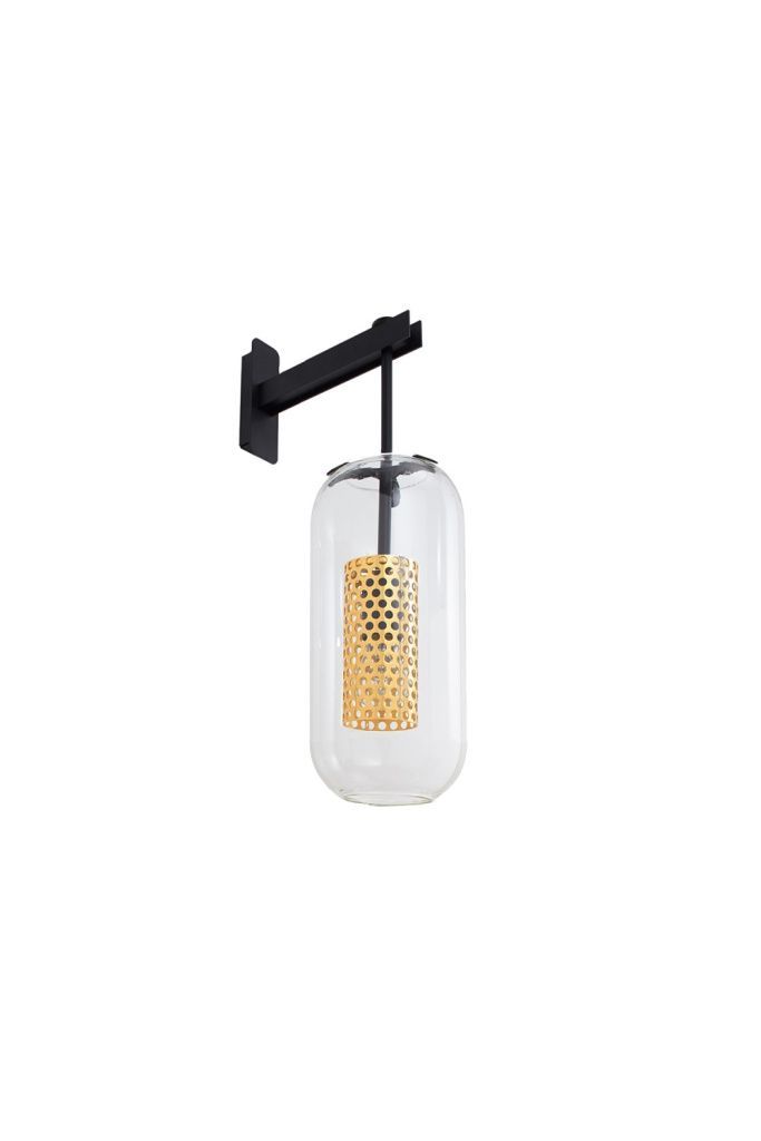 Настенный светильник Vadim излучает красивый, мягкий свет. Перфорированный каркас проецирует графические отражения на стены, что создает теплую атмосферу в помещении. Большая стеклянная колба контрастирует с утонченностью стального стержня, демонстрируя элегантный дизайн, неподвластный времени.