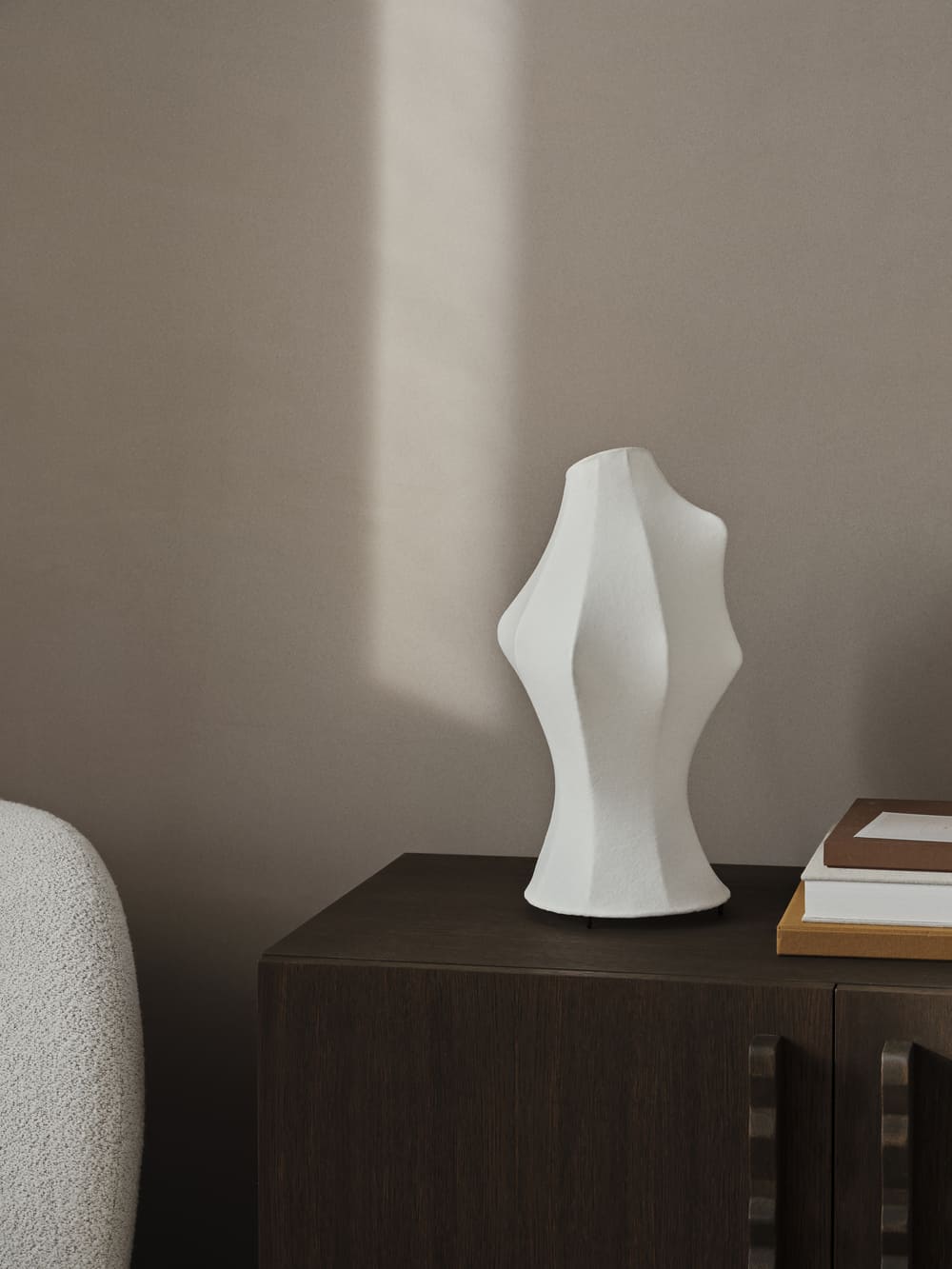 Dae Lamp черпает вдохновение из воздушной красоты куколки бабочки Pieridae. Благодаря сочетанию нежного нетканого полимерного материала и уникальной органической формы лампа не только служит источником освещения, но и произведением искусства. Полупрозрачный абажур рассеивает свет уникальным и пленительным образом, создавая теплое и нежное свечение, которое создает уютную атмосферу в любой комнате.