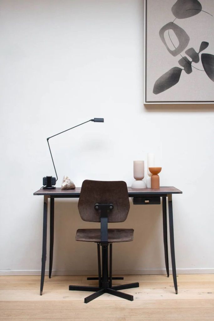 Он имеет вращающийся на 360° абажур, шарнирный рычаг, состоящий из двух сегментов (35 см и 40 см), опирающийся на круглое и плоское основание, увенчанное трансформатором. Эта функциональная и дизайнерская настольная лампа с регулируемой яркостью позволяет светить в любом направлении с желаемой интенсивностью.