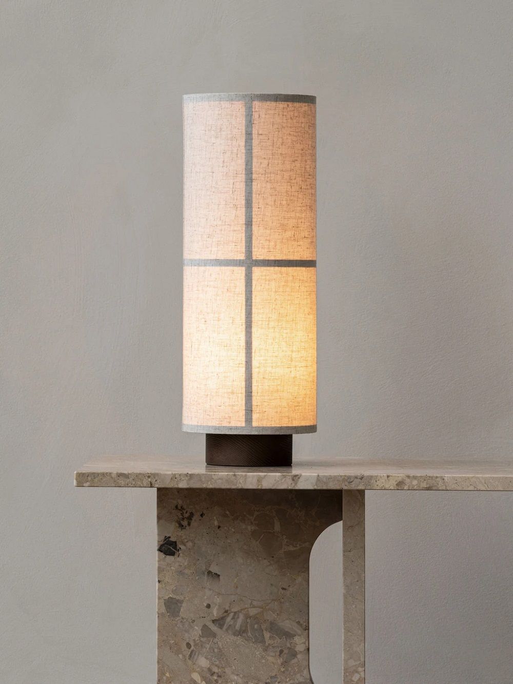 Hashira - настольная лампа, формируемая из основной геометрической формы в архитектуре - тонкая цилиндрическая форма вдохновлена полупрозрачной тканью японских фонарей, мягко рассеивающих свет в разных направлениях.