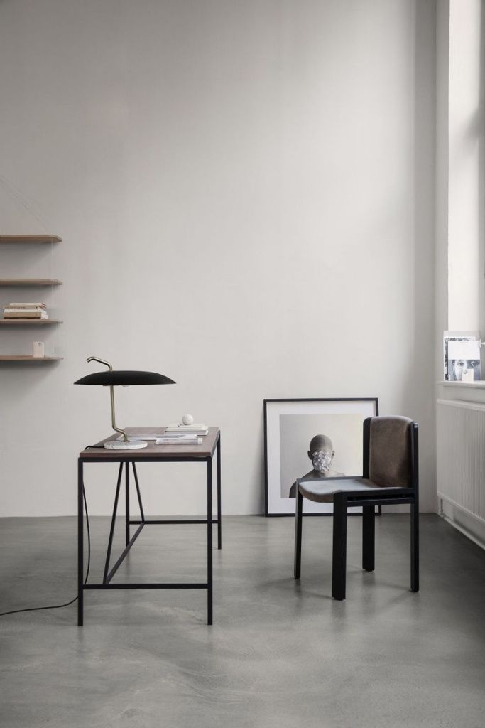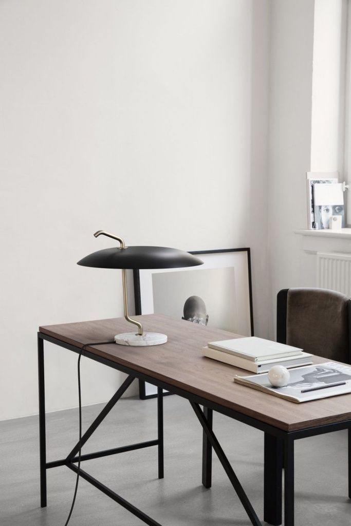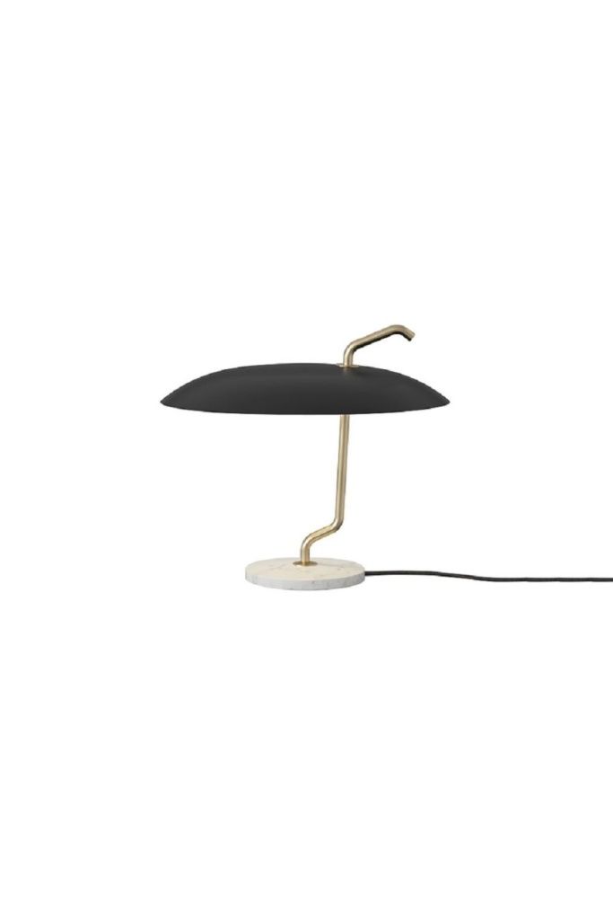 Светильник отличается утонченной простотой, благодаря сочетанию дорогих материалов и остроумного игривого дизайна. Большой алюминиевый отражатель черного цвета асимметрично установлен на стержне из лакированной или матовой латуни, который тщательно закручен в красивом балансирующем движении и опирается на элегантную мраморную основу. Являясь жизненно важной частью конструкции, шток, проходя через отражатель и за его пределы, придает верхней части штока двойную функцию: эстетичную и практичную. Его удобно использовать в качестве ручки для комфортного перемещения лампы.
