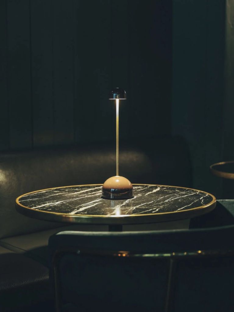 Благодаря небольшому непрозрачному плафону Sips освещает стол напрямую, не ослепляя и не перегружая пространство. Его более широкое основание обеспечивает устойчивость и оснащено сенсорным переключателем с тремя уровнями интенсивности света.