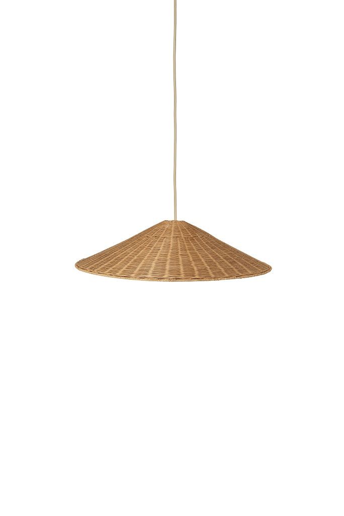 Серия Dou, сплетённая вручную из натурального ротанга, воплощает изысканный контраст геометрических форм и органичной текстуры материала. Этот абажур обеспечит яркое верхнее освещение, а также позволит красивым бликам пробиться сквозь фигурные отверстия плетеного абажура.