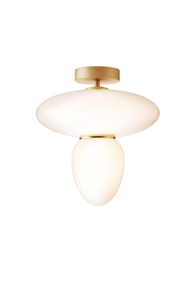 Светильник потолочный Rizzatto 42 Brass Opal от NUURA дает мягкий и равномерный свет, что делает его идеальным для спальни, кухни или коридора. Лампа монтируется прямо на потолок, что позволяет создать уникальное декоративное освещение потолка. Дизайн: Paolo Rizzatto.