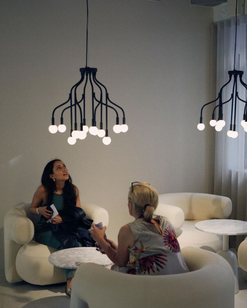 Vekst — впечатляющая коллекция светильников со скульптурными ветвями. Влияние природы на язык дизайна очевидно. Так же, как ветки дерева, Vekst отличается тонкими разветвлениями, растущими, как ветки, в крону дерева. Каждая ветвь, изготовленная из стали с порошковым покрытием, оснащена луковицей, окруженной сферой из травленого опалового стекла — деталью, напоминающей новые побеги, появляющиеся на кончике стебля. Стеклянные абажуры в виде бутонов подсвечиваются светодиодными лампочками, создавая впечатляющую игру света в почти поэтическом дизайне.