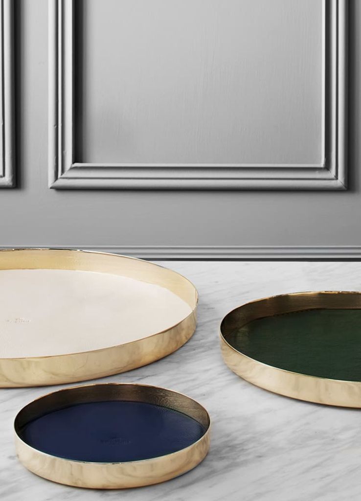 Подносы Karui разработаны GamFratesi и изготовлены с использованием металлического прядения, классической технологии производства Skultuna. Кожа для оформления дна подносов от ведущего шведского кожевенного завода Tärnsjö, известного своей высококачественной кожей.