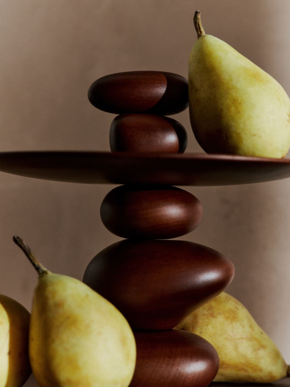 Блюдо Pebble Dessert Stand вдохновлено естественной красотой сложенных друг на друга камешков, которые часто можно увидеть вдоль побережья. Изготовленная из сертифицированного FSC™ бука, оно имеет гладкую полированную отделку, которая подчеркивает естественную структуру и прочность древесины. Благодаря двум уровням она идеально подходит для демонстрации десертов, выпечки или закусок. Многоуровневая конструкция добавляет высоту и визуальный интерес сервировке стола.