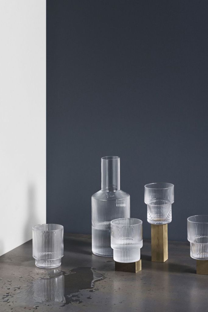 Графин Ripple Carafe от Ferm Living - то, что нужно для вечера в хорошей компании. Геометрически выверенная форма графина одинаково эстетична и функциональна. Переливающаяся на свету игра света в волнистых гранях графина добавляет изысканности процессу наслаждения Вашим любимым напитком.