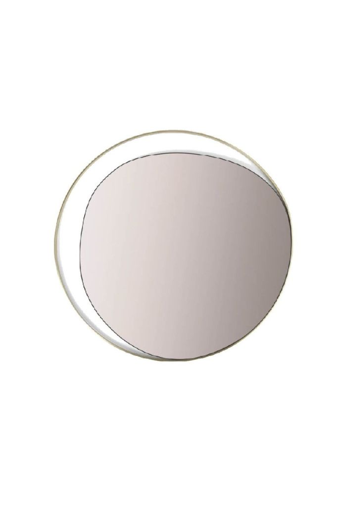 Перед вами зеркало, которое с легкостью подвергает сомнению совершенство круга. Его дизайн чувственен и бесконечен. Зеркало сделано в дымчатом стекле, окруженном изящным большим латунным кольцом. Это зеркало выполнено с большим вниманием к деталям, что делает его больше чем просто зеркало, это - настенная скульптура и настоящий праздник для глаз.