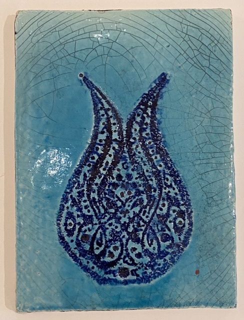 Панно керамическое Синий гранат на ярко голубом фоне 25х19