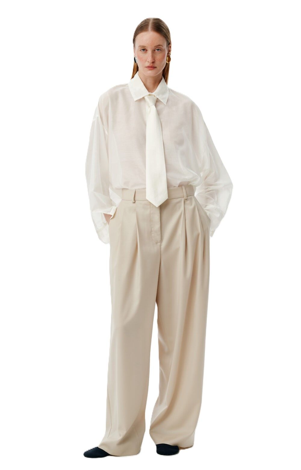 Брюки заниженные бежевые, S | KOKO BRAND